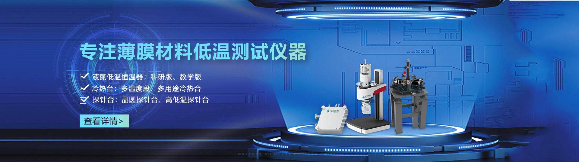 專注于液氮低溫恒溫器、冷熱臺、探針臺等薄膜材料測試儀器的研發(fā)以及技術服務